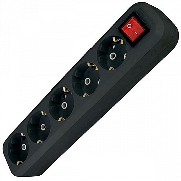 Колодка розеточная 5-местный, с выключателем, с заземлением, черный, SQ1806-0137 SQ1806-0137 TDM