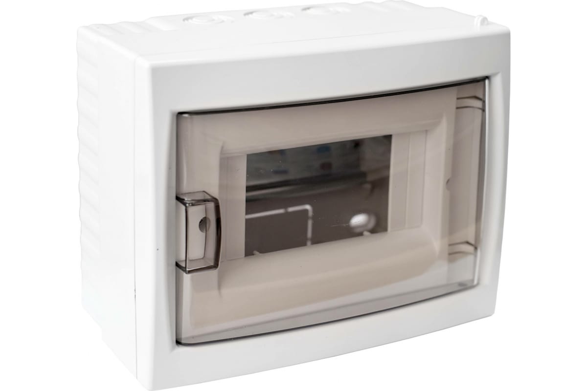 Щит распределительный навесной КНО-6Д с 0 шиной 6М пластиковый белый прозрачная дверь