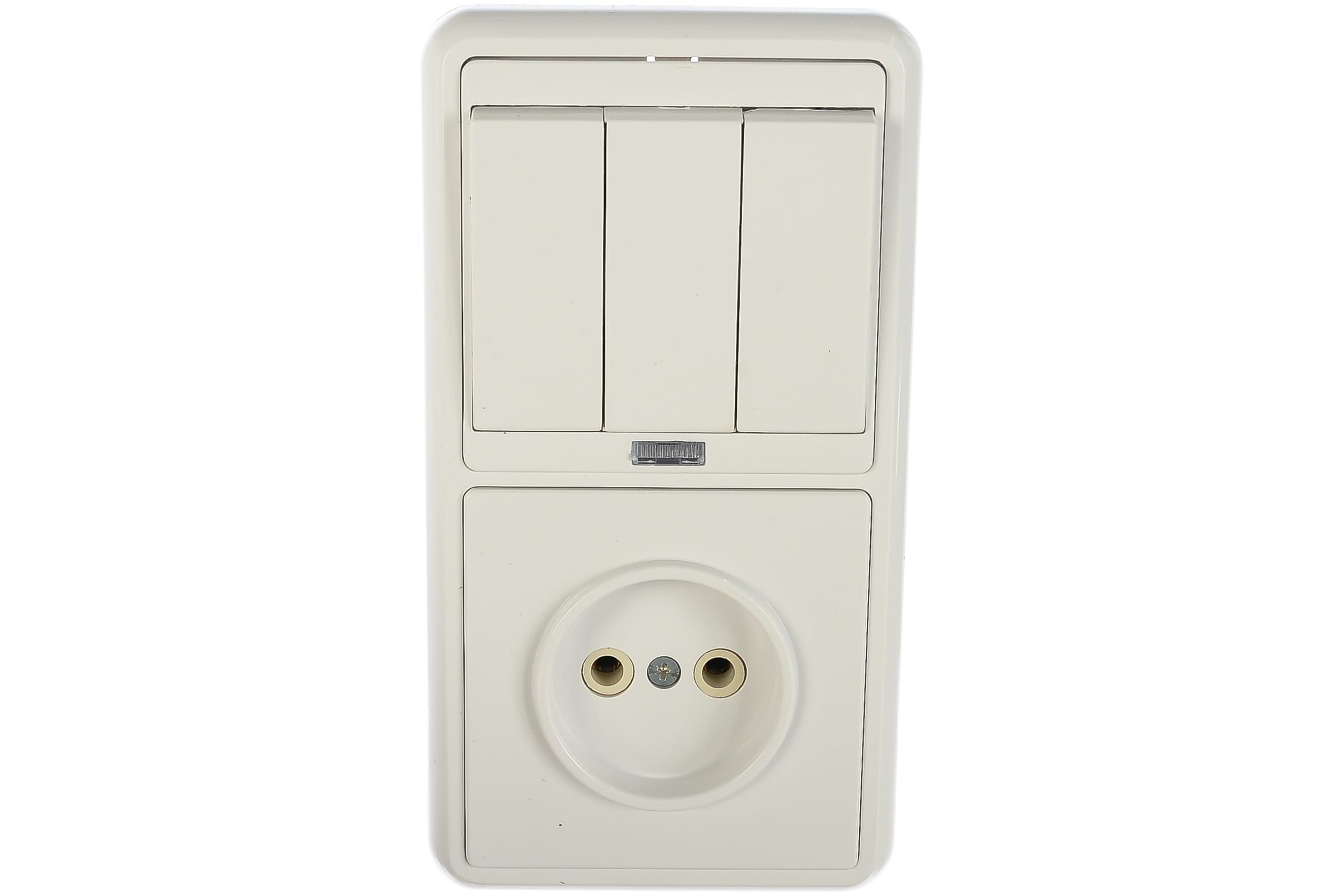 Блок БКВР-212 Бэлла (3-кл. выкл. с инд. + розетка) бел. Кунцево 5841