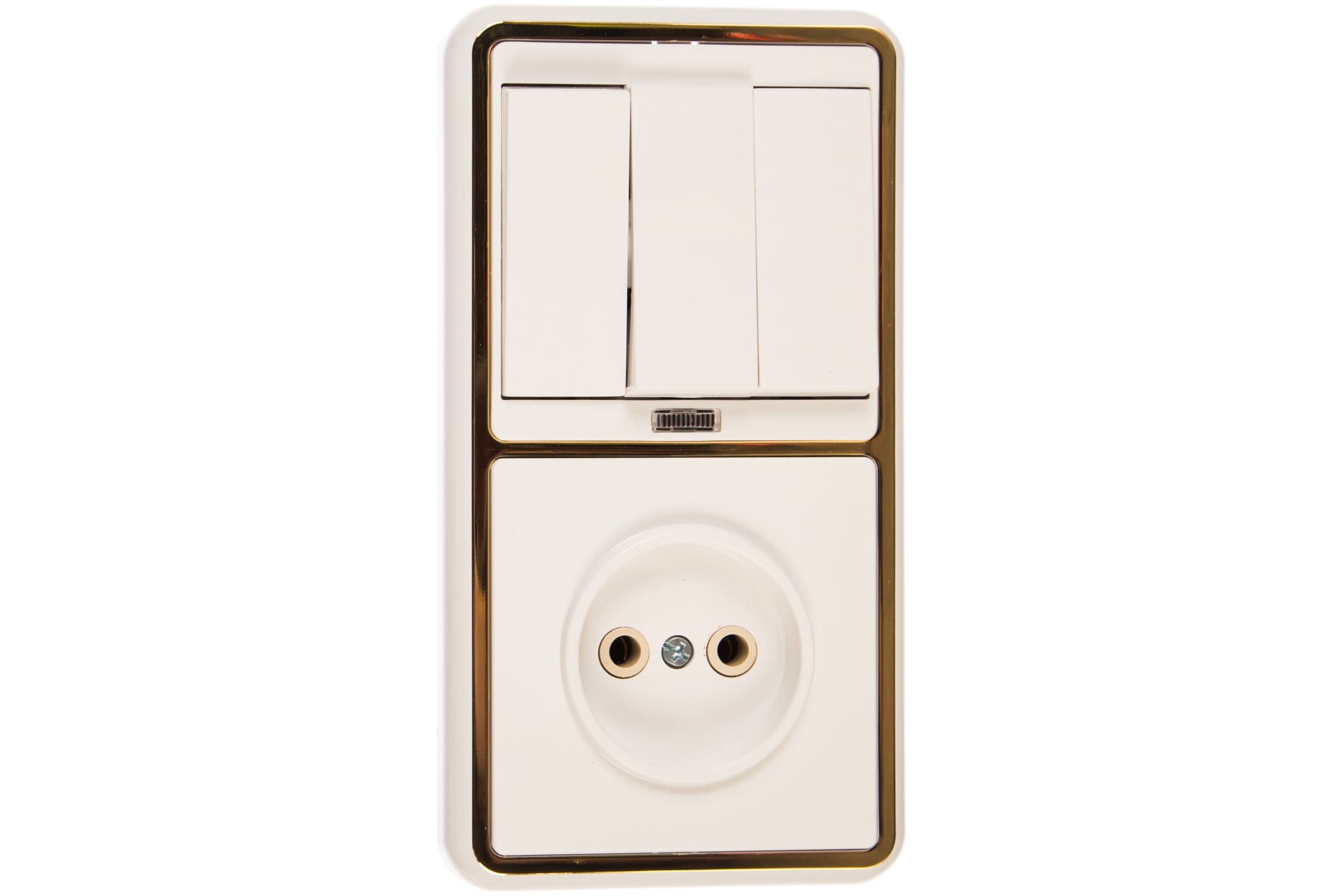 Блок БКВР-212 Бэлла (3-кл. выкл. с инд. + розетка) зол. Кунцево 5842