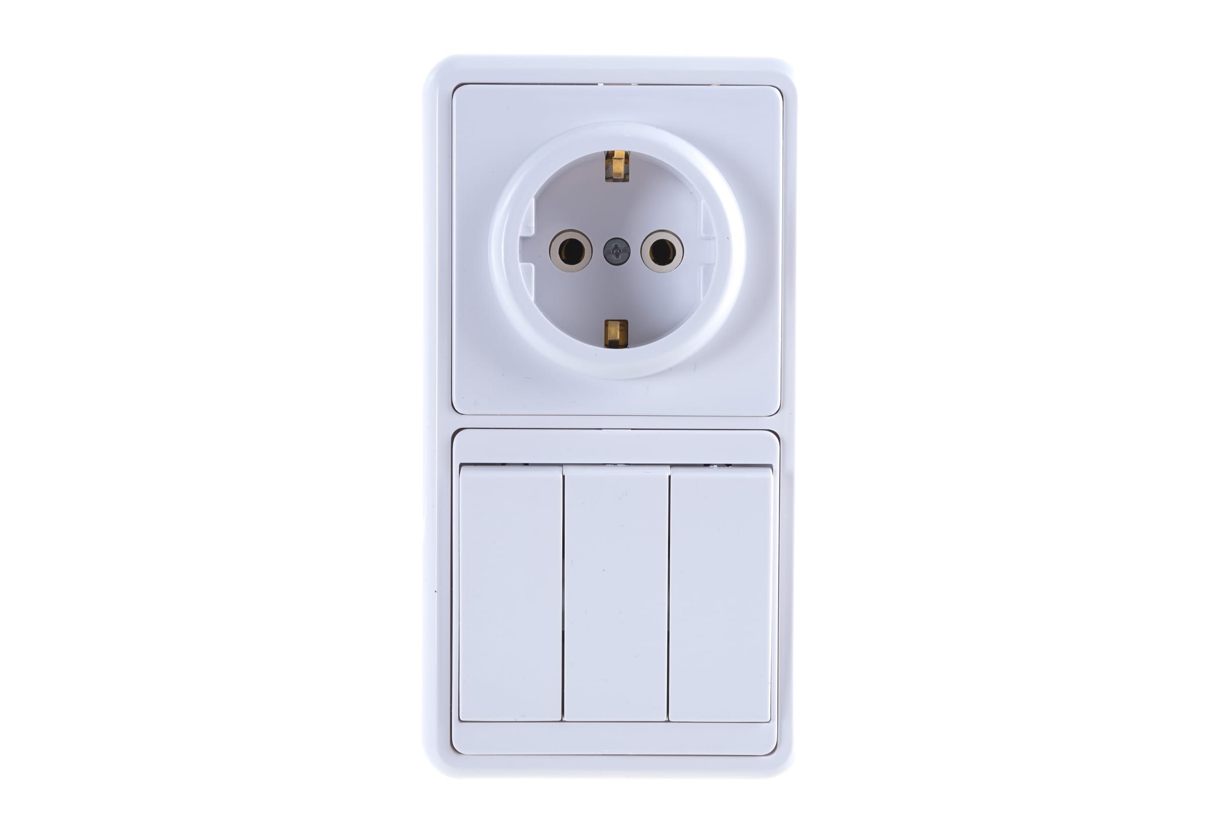 Блок БКВР-033 Бэлла (3-кл. выкл. + розетка с заземл.) бел. Кунцево 5843