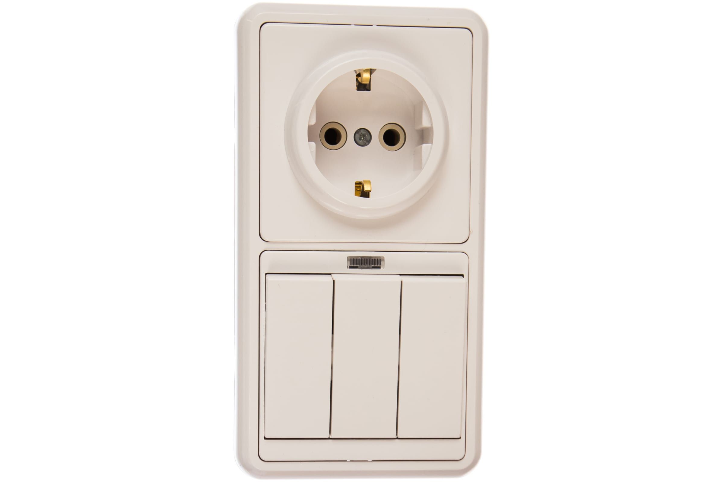Блок БКВР-054 Бэлла (3-кл. выкл. с подсветкой + розетка с заземл.) бел. Кунцево 5845
