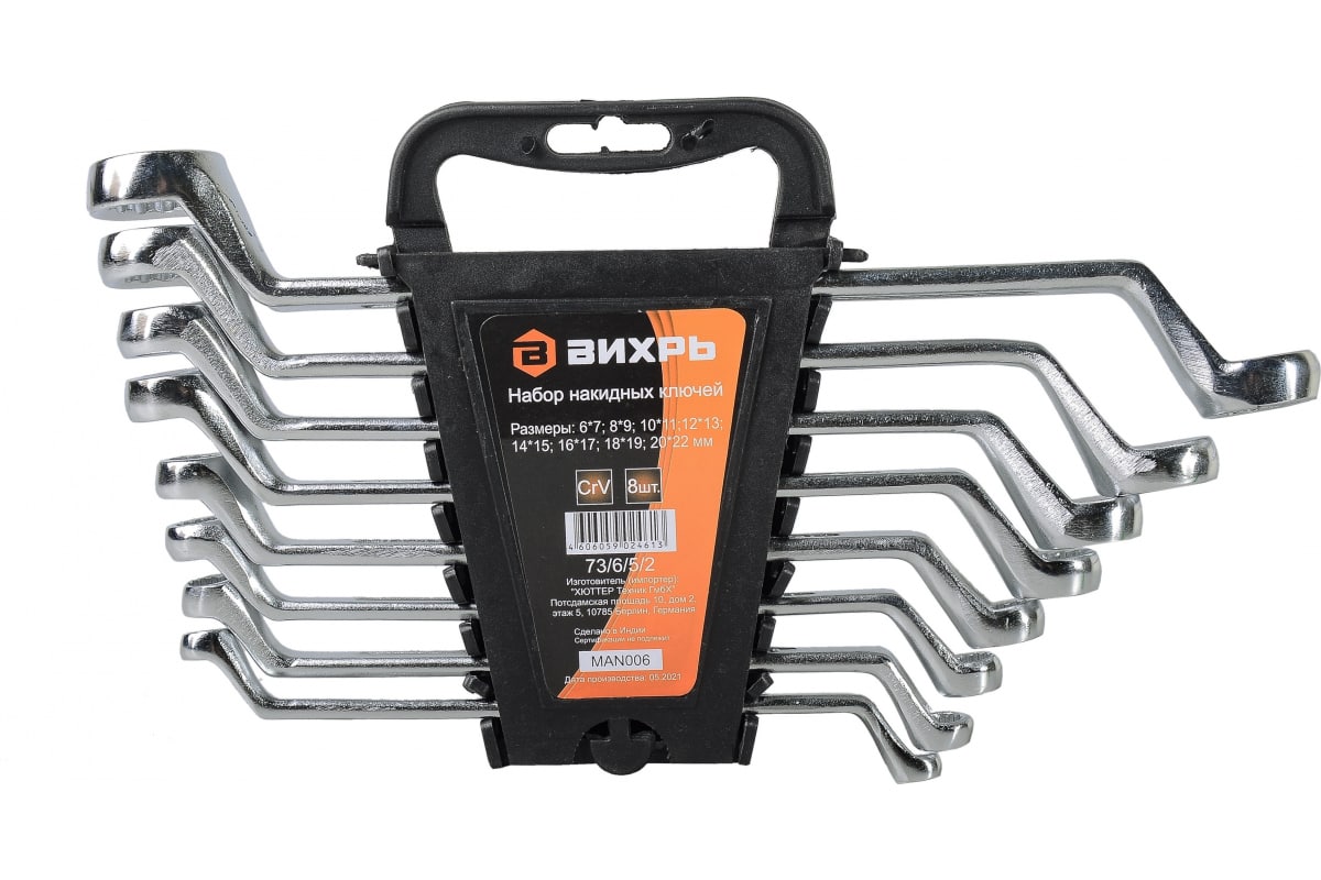 Набор накидных ключей 8 штук 6 - 22 (73/6/5/2)