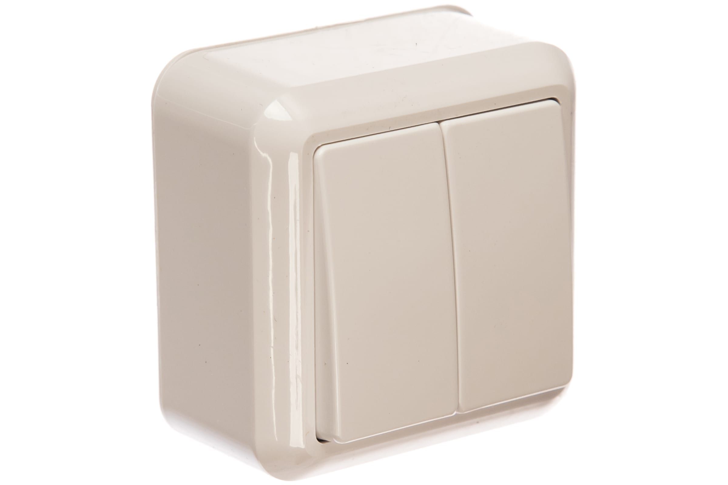 Выключатель 2-кл. ОП Оптима 10А IP20 А510-380 с монтаж. пластиной бел. Кунцево 8003