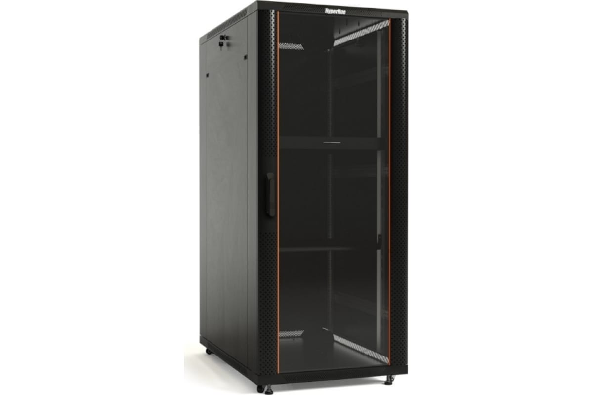 Шкаф напольный 19-дюймовый 42U 2055х600х1000 мм (ВхШхГ) передняя стеклянная дверь со стальными перфорированными боковинами задняя дверь сплошная ручка с замком крыша нового типа цвет черный (RAL 9004) (разобранный)