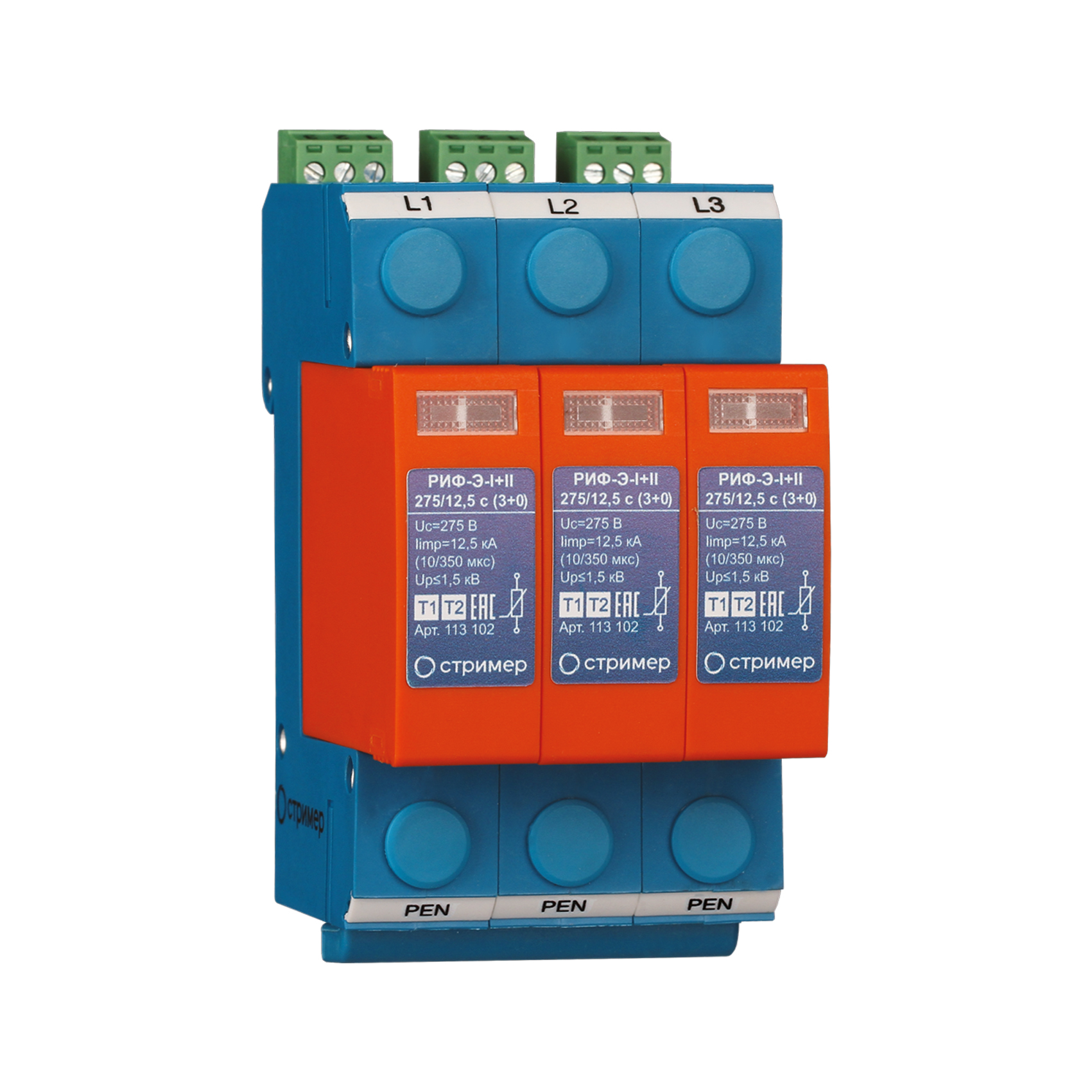 Устройство защиты от импульсных перенапряжений РИФ-Э-I+II 275/12.5 c (3+0) 113102 Стример