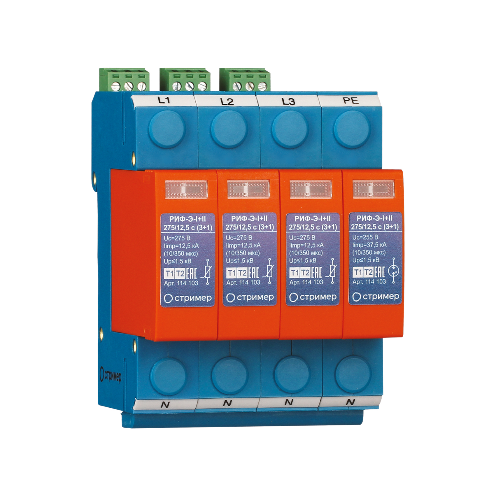 Устройство защиты от импульсных перенапряжений РИФ-Э-I+II 275/12.5 c (3+1) 114103 Стример